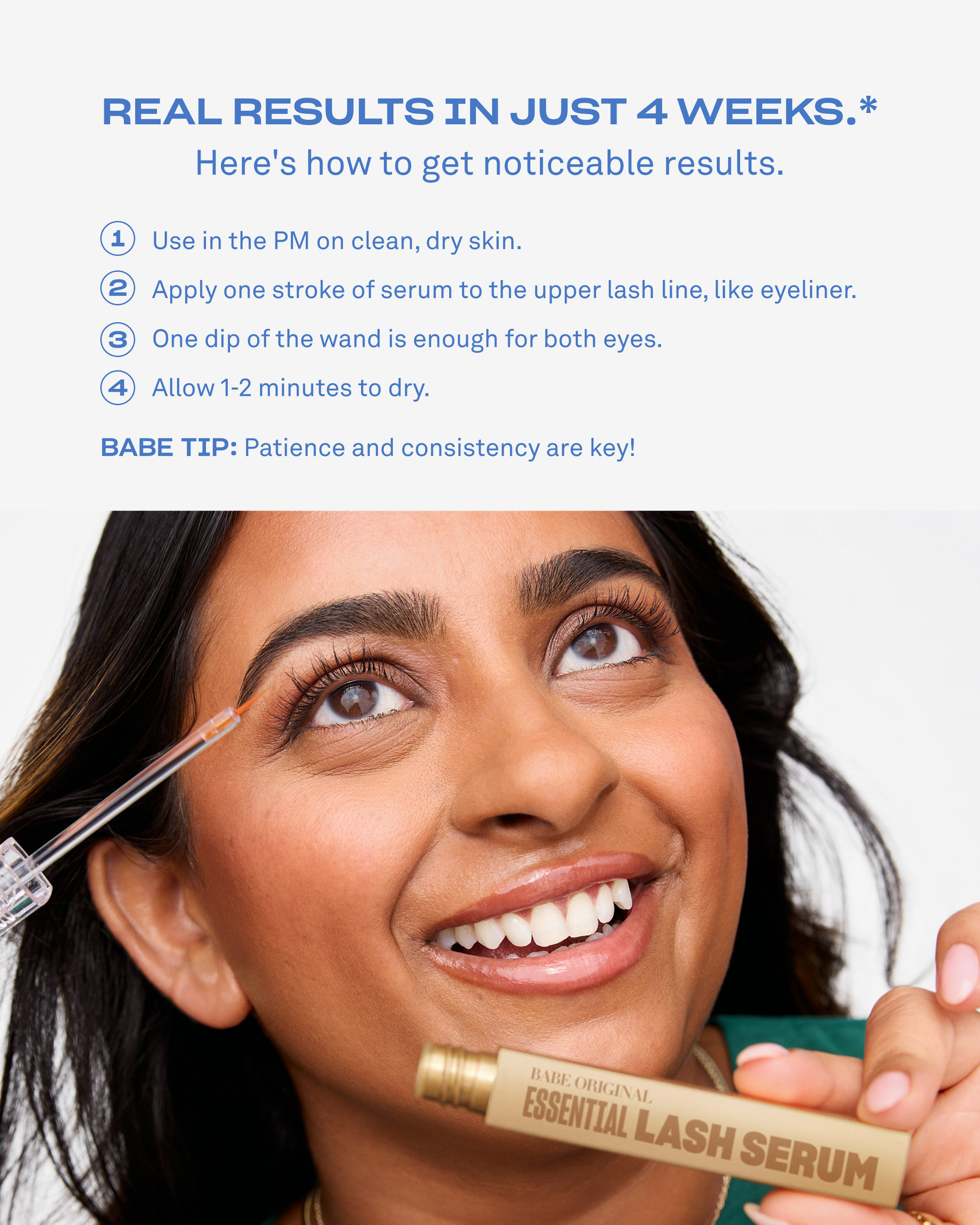 "I first discovered Babe Original's Essential Serum in 2021 through social media, and within just 3-4 weeks, my friends were convinced I was wearing false lashes — that's how dramatic the results were! Since then, I've been hooked. The results speak for themselves —this serum truly works!"